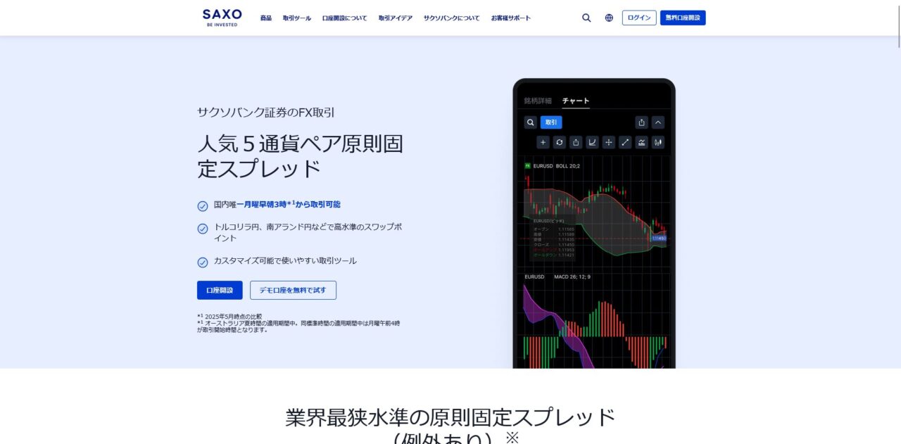 主要通貨ペアのスプレッドは業界最狭水準と案内されています。